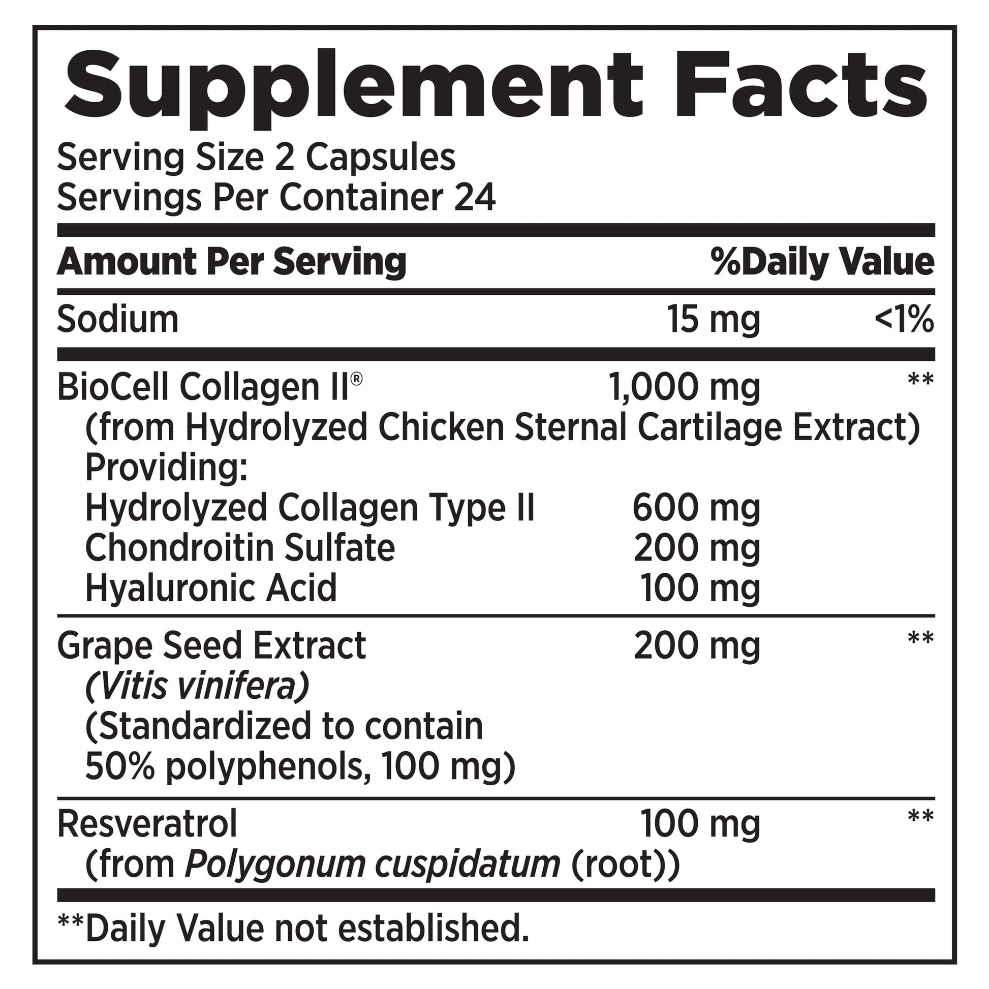 - 1,000 mg of BioCell Collagen II® provides a nourishing blend of vital nutrients to help maintain supple, youthful skin*